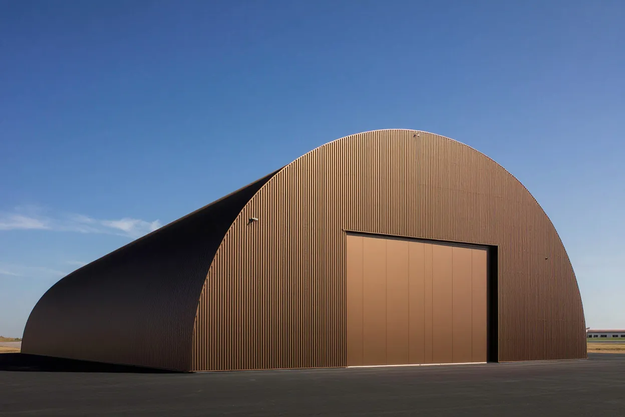 • Конструкция: Каркас ангара выполнен из высокопрочной стали, что обеспечивает его устойчивость к ветровым и снежным нагрузкам. Панели часто изготавливаются с использованием сэндвич-технологий, что повышает теплоизоляционные свойства.