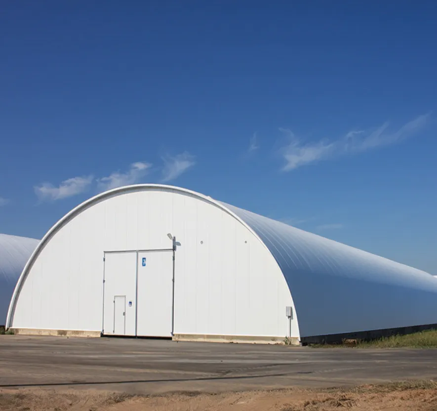 Преимущества бескаркасного арочного ангара для складов кормов